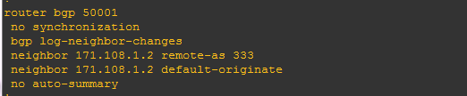 Configure the routers ISP1 and ISP2 for EBGP and advertise a default route to the internal BGP network along with some routes that simulate an Internet environment.configures ISP1(R6) for EBGP and allows a default route to be advertised to the EBGP peer to R1.