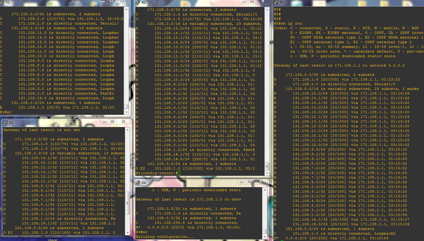 در نهایت در شکل زیر تمام روتر ها با دستور show ip route مشخص شده اند.